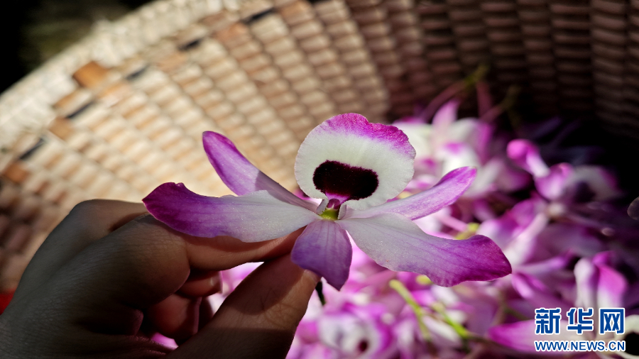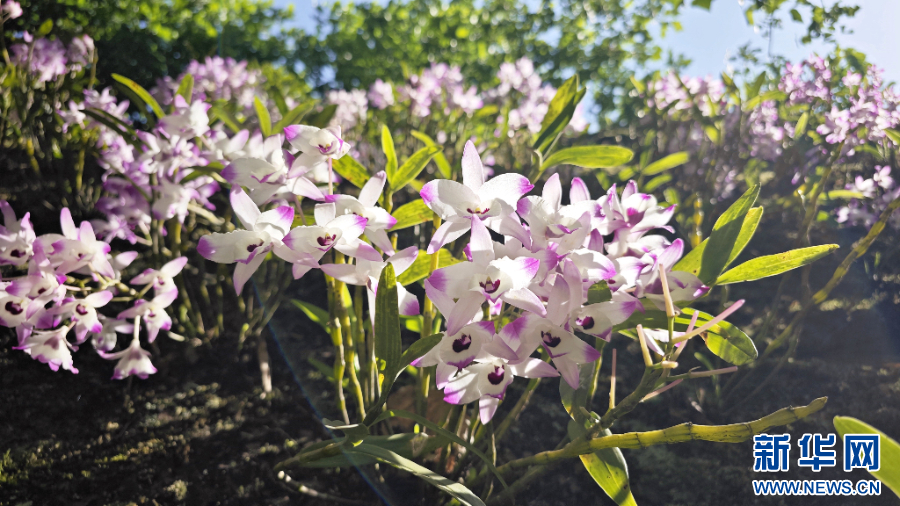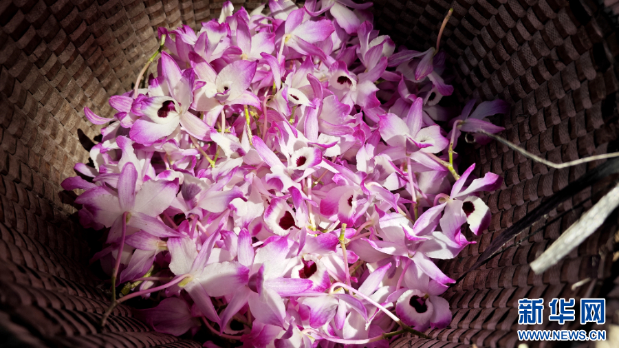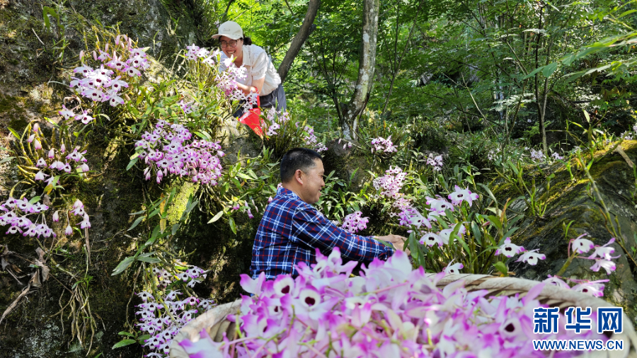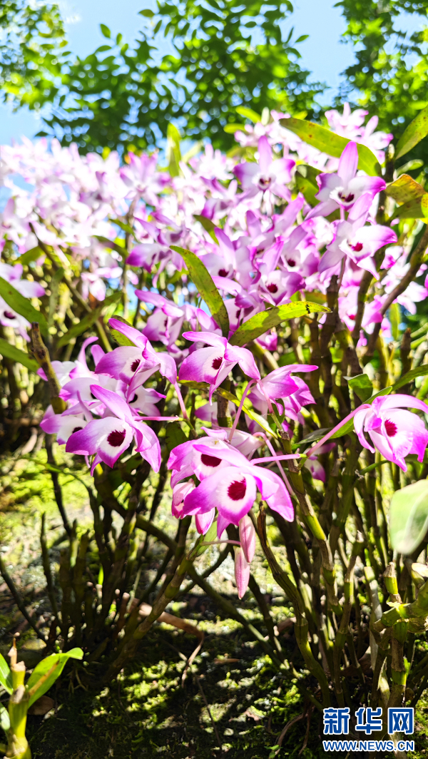 在赤水市宝源乡联华村,金钗石斛花开正艳。新华网发(张浪摄)