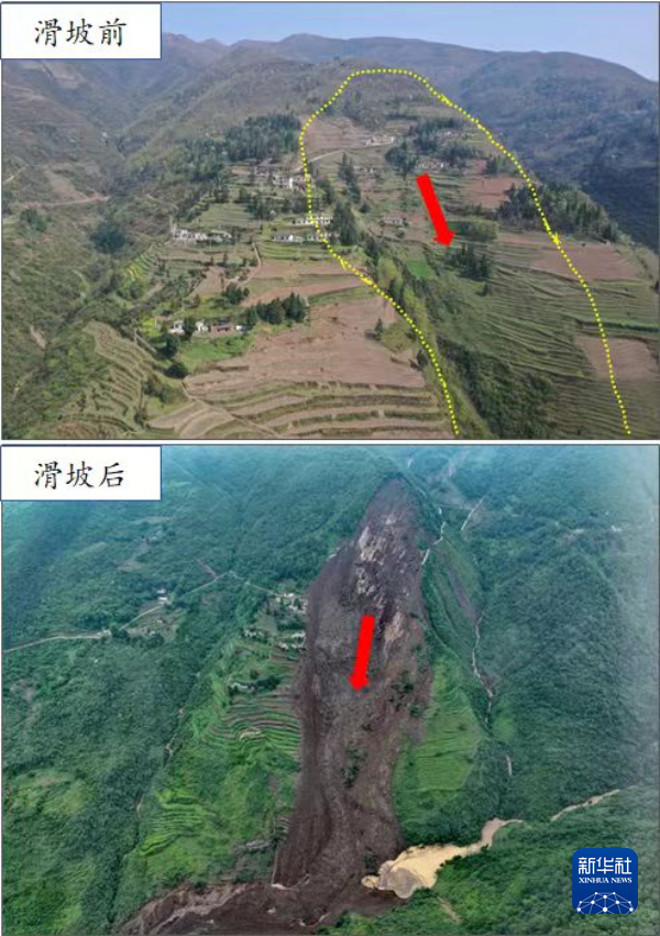 经航测,庆阳村滑坡长1040米、宽300米,平均厚度10米,体积规模约240万立方米。(自然资源部地质勘查管理司供图)